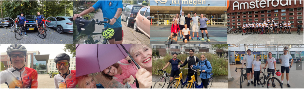 Zorgprofessionals hoofd-halskanker en ex-patiënt Kees Timmer fietsten vanuit Bergen, Alkmaar, Amsterdam, Leiden, Woerden, Amersfoort, Zwolle, Maastricht (210 km!) en Groningen (211 km!!) of renden (!) vanuit Nijmegen en Arnhem naar Utrecht om geld op te halen voor het Michel Keijzerfonds. Een fonds waarmee wetenschappelijk onderzoek naar hoofd-halskanker wordt gefinancierd.